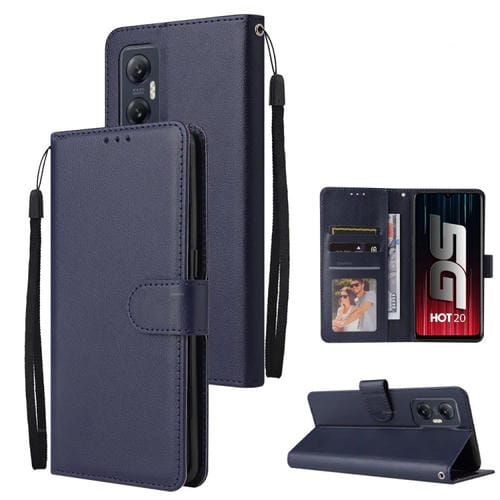 Funda de Cuero para Infinix Hot 20 5G con 3 Ranuras para Tarjetas (Azul Oscuro)