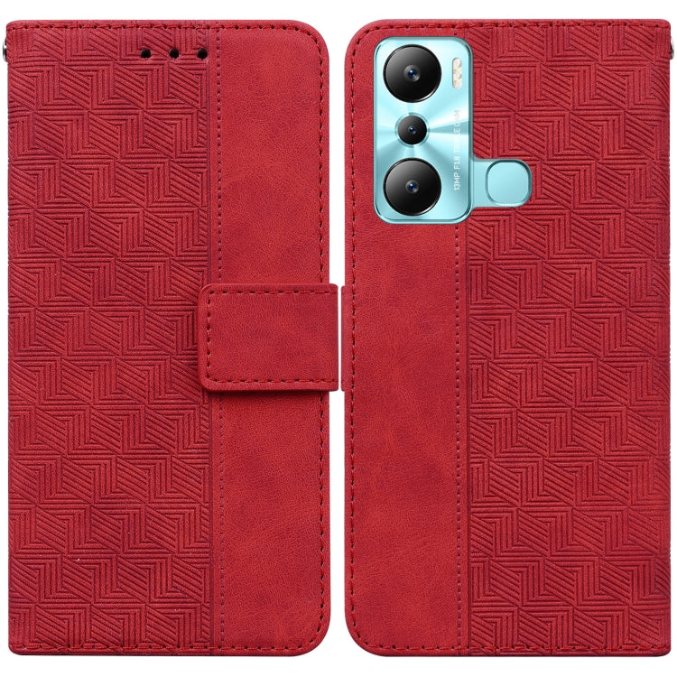 Funda de Cuero para Infinix Hot 20I con Relieve Geométrico (Rojo)