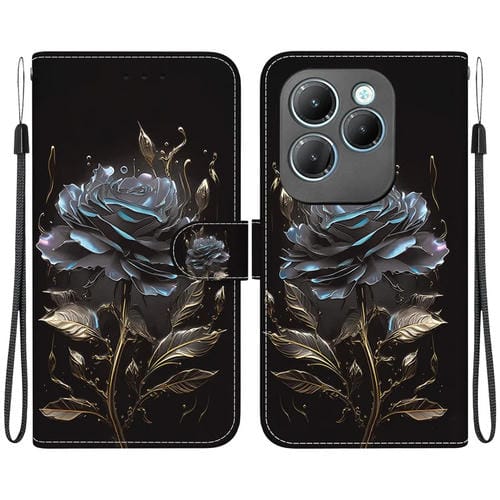 Funda de Cuero para Infinix Hot 40/40 Pro con Dibujo Coloreado y Textura de Cristal (Rosa Negra)
