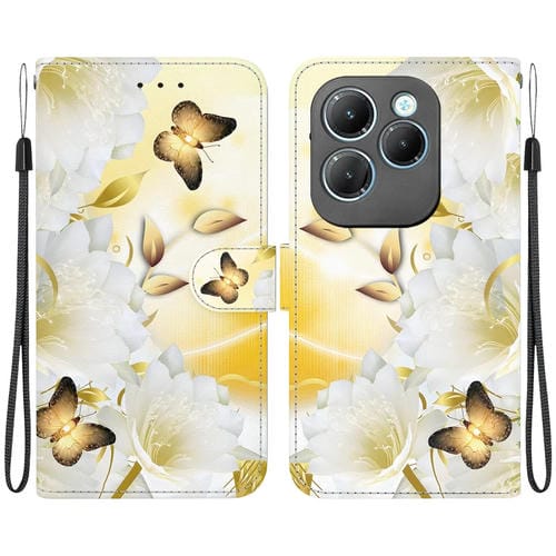 Funda de Cuero para Infinix Hot 40/40 Pro con Dibujo Coloreado y Textura de Cristal (Epiphyllum Mariposa Dorada)