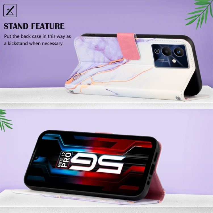 Funda de Cuero con Tapa para Infinix Note 12 Pro 5G Pt003 Patrón Mármol (Blanco Púrpura)