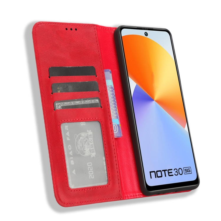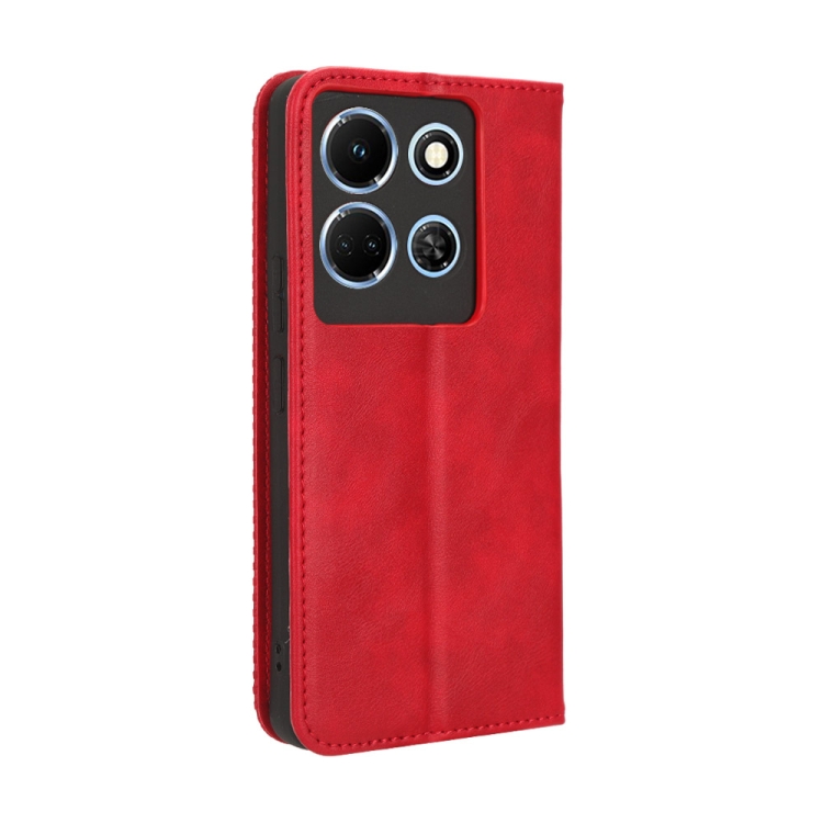 Funda de Cuero con Hebilla Magnética para Infinix Note 30 5G Textura Retro (Rojo)