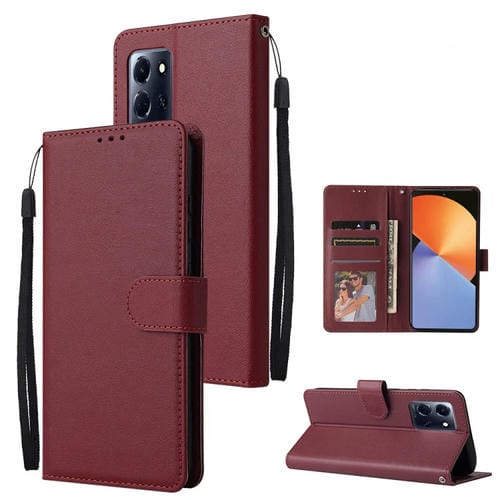 Funda para Infinix Note 30 de Cuero Multifuncional con 3 Ranuras para Tarjetas (Rojo Vino)