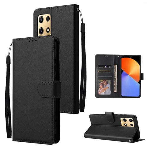 Funda de Cuero para Infinix Note 30 Pro con 3 Ranuras para Tarjetas Multifuncional (Negro)