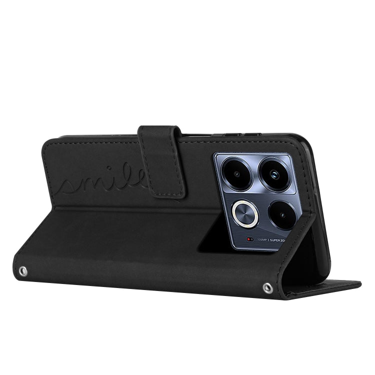 Funda para Teléfono Infinix Note 40 5G Skin Feel Heart Cuero En Relieve con Cordón Largo (Negro)