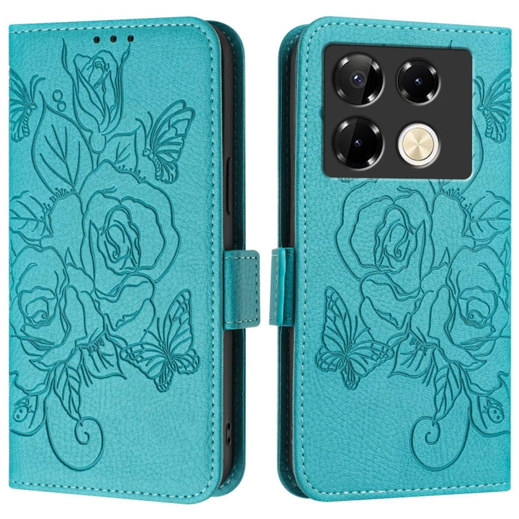 Estuche de Cuero Antirrobo RFID para Infinix Note 40 Pro 4G con Relieve (Azul Claro)
