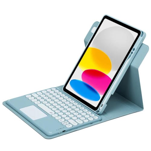 Funda de Cuero con Teclado Bluetooth para iPad 10th Gen 10.9 2022 Botón Redondo Giratorio 360° (Azul Niebla)