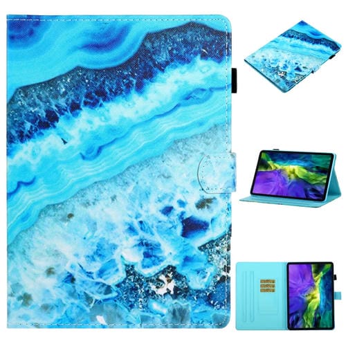 Funda de Cuero Inteligente para iPad Pro 11 (2024) con Costuras de Colores (Mármol Azul)