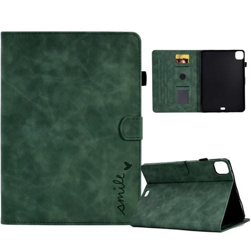 Funda de Cuero Inteligente para iPad Pro 11 (2024) con Sonrisa En Relieve (Verde)
