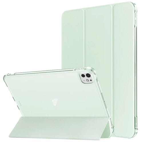 Funda para iPad Pro 11 (2024) TPU Tres Pliegues Cuero Esmerilado Ranura Bolígrafo (Verde Claro)