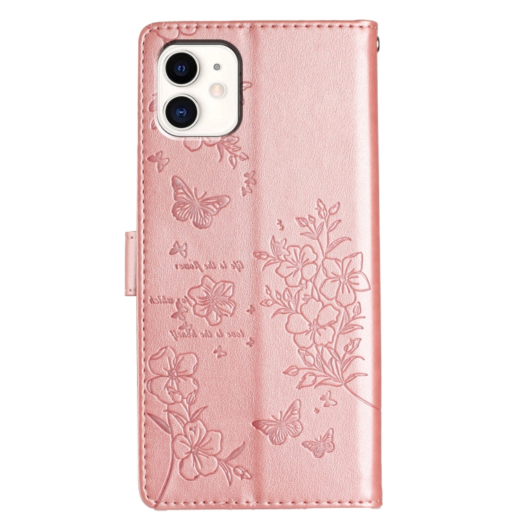 Funda para Teléfono iPhone 11 Cuero Relieve Flor de Amor y Mariposa (Oro Rosa)