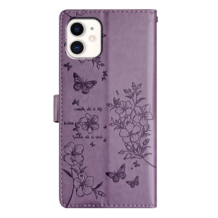 Funda para Teléfono iPhone 11 Cuero Relieve Flor de Amor y Mariposa (Púrpura)