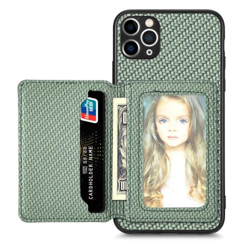 Caja de Teléfono para iPhone 11 Pro con Bolsa de Tarjeta Magnética de Fibra de Carbono (Verde)
