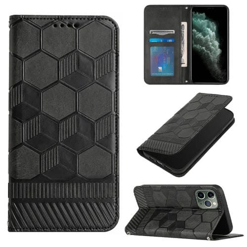 Funda de teléfono para iPhone 11 Pro con tapa de cuero magnético y textura de fútbol (Negro)