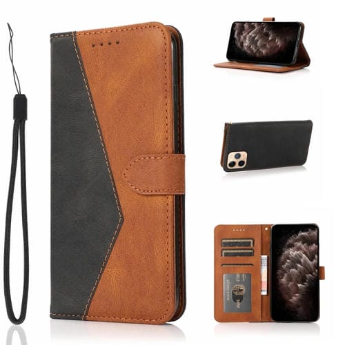 Funda de Teléfono iPhone 11 Pro Cuero Costuras Dos Colores (Marrón Negro)
