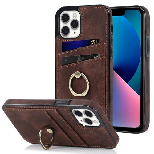 Funda de Teléfono iPhone 11 Pro Cuero Parche Vintage Soporte para Anillo (Marrón)