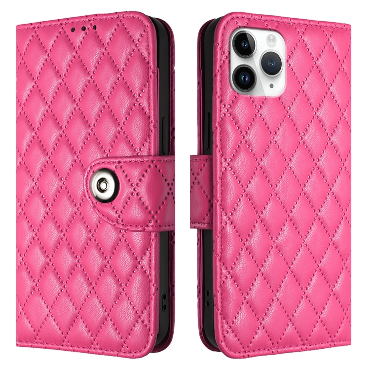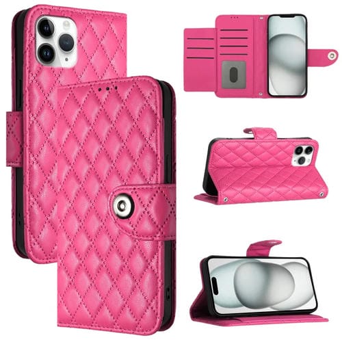 Funda para Teléfono iPhone 11 Pro Cuero con Tapa Textura Rómbica y Cordón (Rojo Rosa)