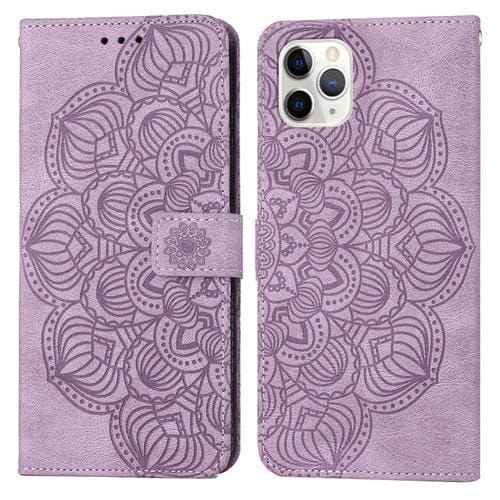 Funda de Cuero para iPhone 11 Pro Mandala con Tapa en Relieve (Púrpura)