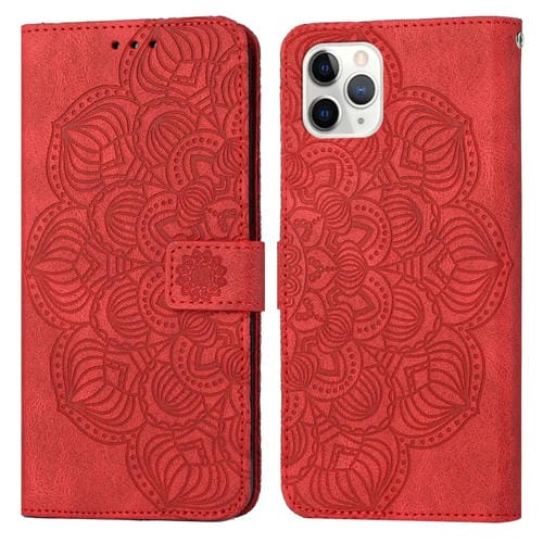 Funda para iPhone 11 Pro Mandala de Cuero con Tapa en Relieve (Rojo)