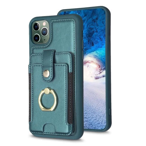 Funda para iPhone 11 Pro Max Bf27 Anillo de Metal Tarjeta Bolsa Titular Caja del Teléfono (Verde)