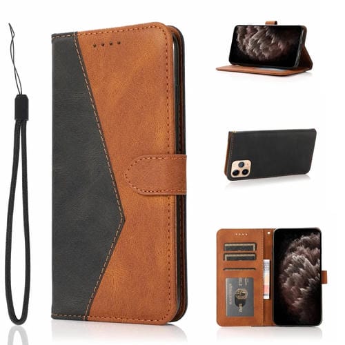 Estuche para Teléfono iPhone 11 Pro Max Cuero con Costuras de Dos Colores (Marrón Negro)