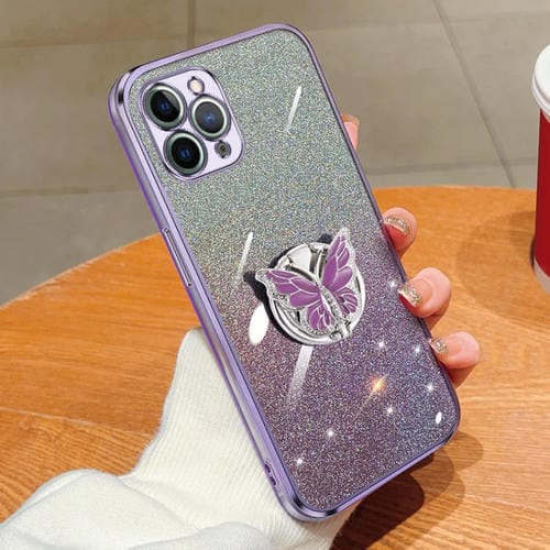 Funda para Teléfono TPU para iPhone 11 Pro Max con Soporte de Mariposa y Brillo Degradado (Púrpura)
