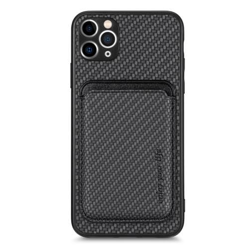 Funda para Teléfono iPhone 11 Tarjeta Cuero Fibra de Carbono Magsafe (Negro)