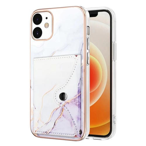 Estuche para Teléfono iPhone 12/12 Pro con Ranura para Tarjeta Imd Patrón Mármol (Blanco y Morado)