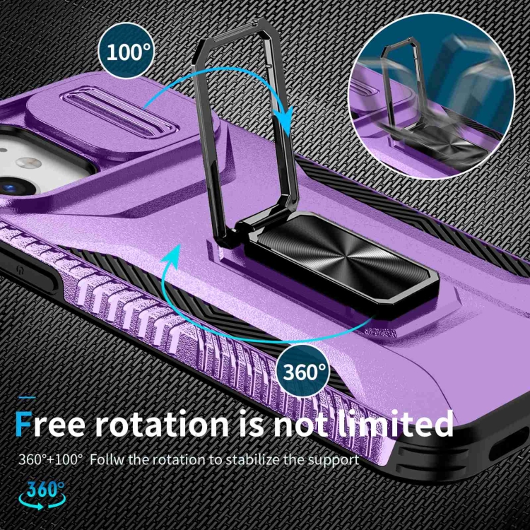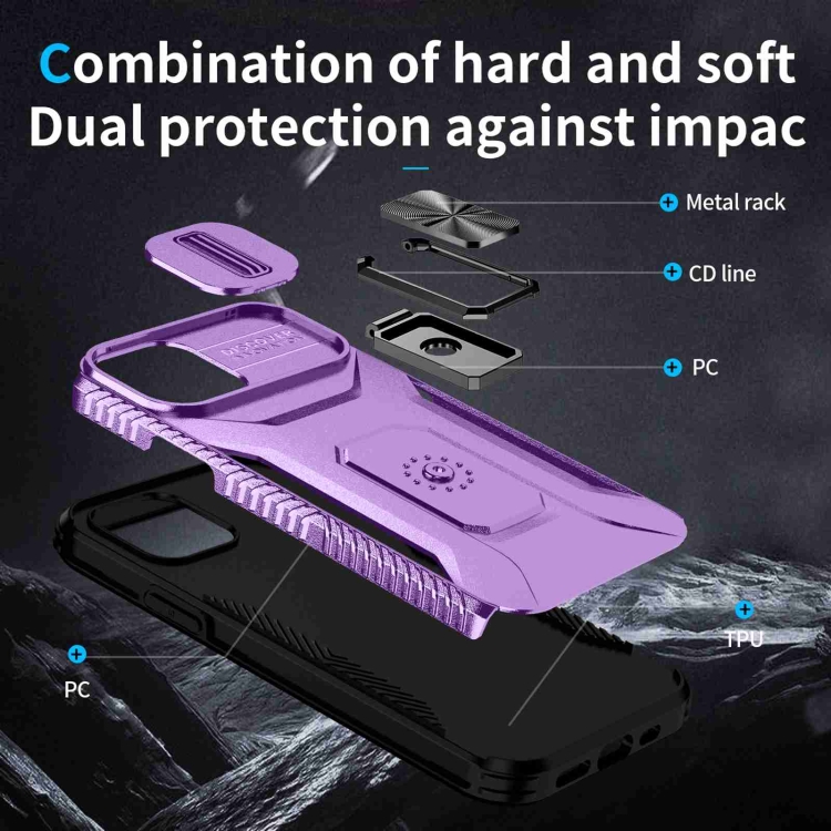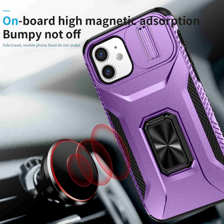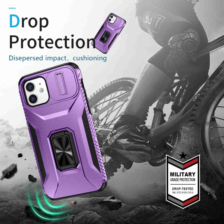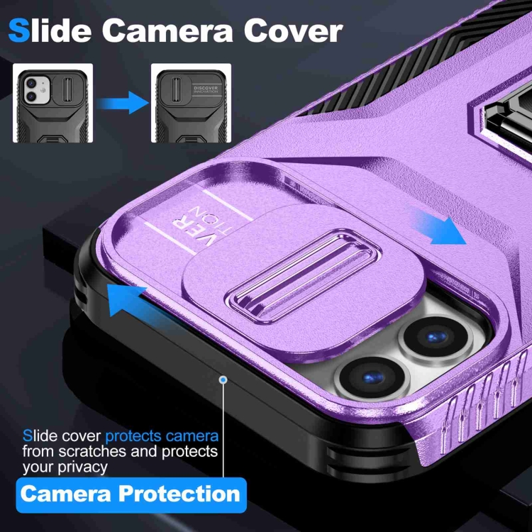 Funda para Teléfono iPhone 12/12 Pro con Soporte Deslizante para Escudo de Levas (Púrpura)