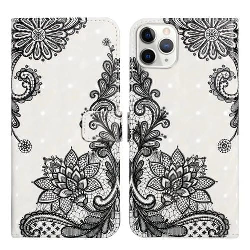 Funda para Teléfono iPhone 12/12 Pro Cuero Dibujo 3D en Relieve al Óleo (Flor de Encaje)