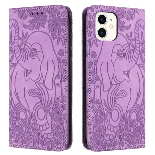 Funda para Teléfono iPhone 12/12 Pro Cuero Relieve Elefante Retro (Púrpura)