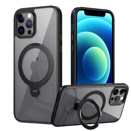 Funda para Teléfono iPhone 12/12 Pro Transparente con Soporte Anillo Giratorio Magnético Magsafe (Negro)