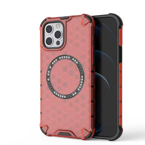 Funda para Teléfono iPhone 12/12 Pro Honeycomb Magnetic Ring a Prueba de Golpes (Rojo)
