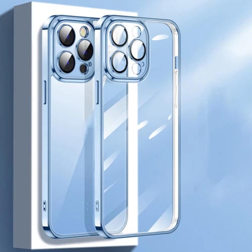 Caja de teléfono para iPhone 12 con Gafas de Vidrio Electrochapado (Sierra Blue)