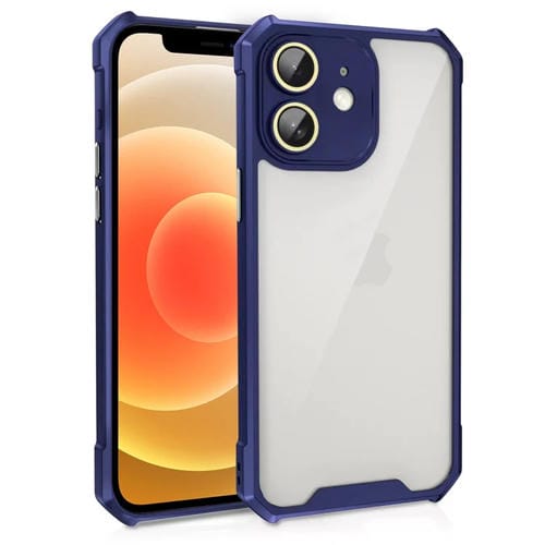 Estuche acrílico para teléfono iPhone 12 a prueba de golpes con Película de vidrio para Lentes (Azul)