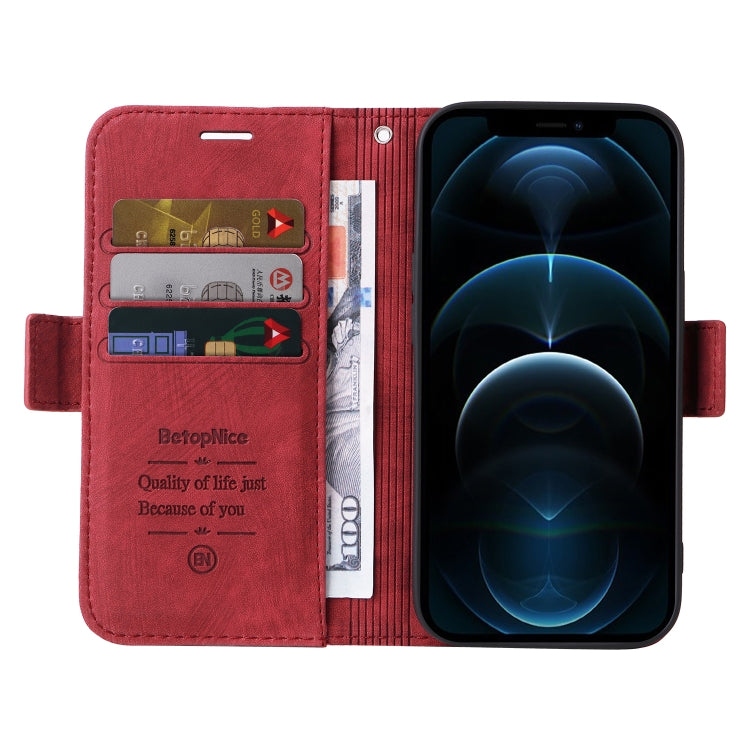 Estuche de Teléfono Betopnice para iPhone 12 Mini Cuero con Hebilla de Doble Cara (Rojo)