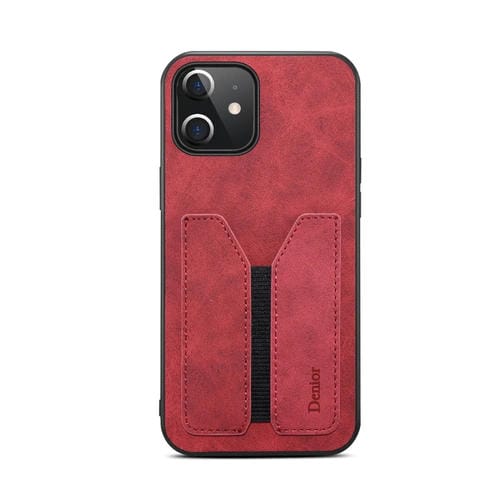 Funda para iPhone 12 Mini Denior Dv Tarjeta Elástica Pu Contraportada Caja del Teléfono (Rojo)
