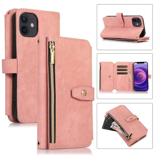 Funda de Cuero Dream 9-Card Wallet Zipper para iPhone 12 Mini (Rosa)