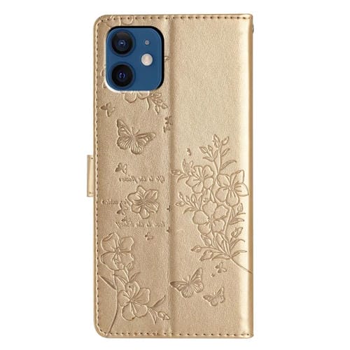 Funda para Teléfono iPhone 12 Mini Cuero Relieve Flor de Amor y Mariposa (Dorado)
