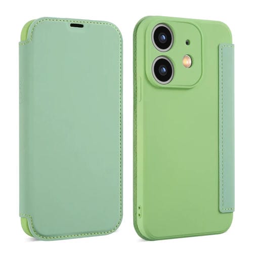 Funda para Teléfono iPhone 12 Mini Imitación Cuero Sensación Piel Líquida Ranuras para Tarjetas (Verde Té)