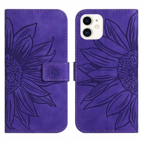 Funda para iPhone 12 Mini Skin Feel Sun Flower Pattern Flip de Cuero con Cordón (Púrpura Oscuro)