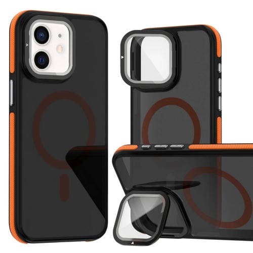 Estuche para Teléfono iPhone 12 Pro / 12 Magsafe con Película de Lente y Soporte Plegable (Naranja)