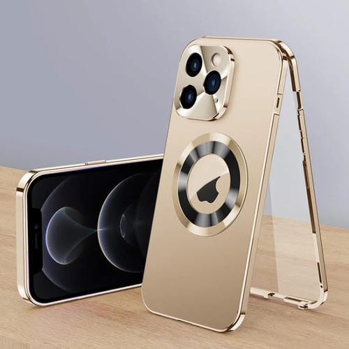 Funda Magnética Para iPhone 12 Pro de Vidrio Templado HD (Dorado)