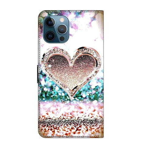 Funda para iPhone 12 Pro Max y 13 Pro Max Crystal 3D Cuero a Prueba de Golpes (Corazón de Diamante Rosa)