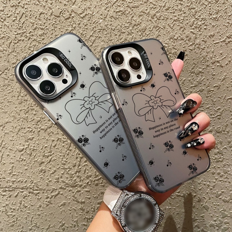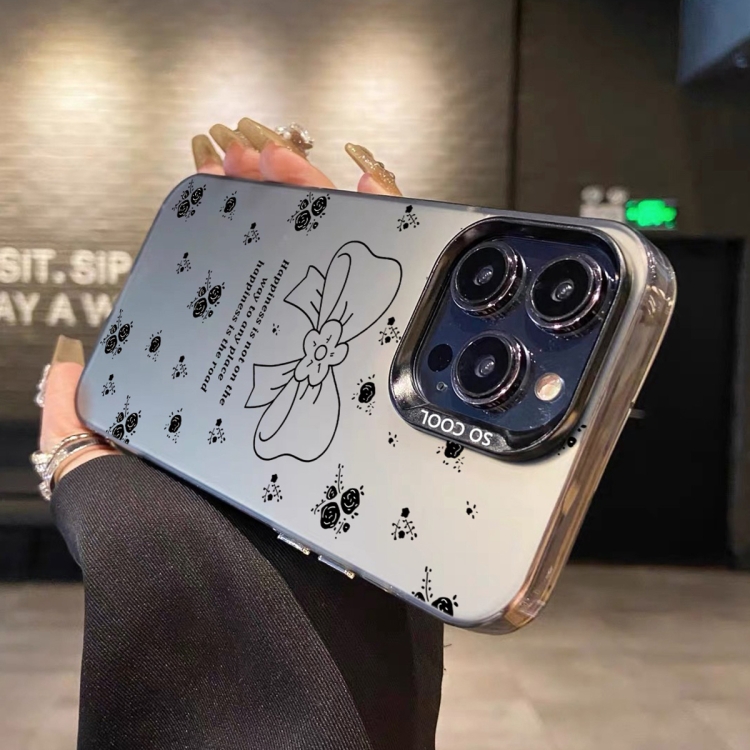 Caja de Teléfono Híbrida TPU PC para iPhone 12 Pro Max con Pintura Plateada (Lazo Floral Negro)
