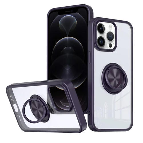 Funda para Teléfono iPhone 12 Pro Max Ring Holder PC Hybrid TPU (Púrpura)