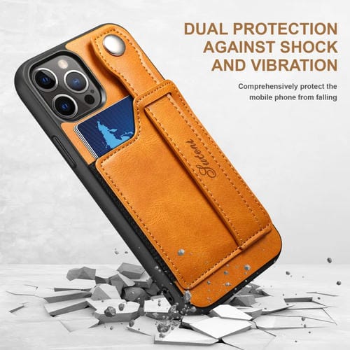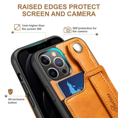 Funda de teléfono Suteni 215 para iPhone 12 Pro Max con correa de muñeca PU (Caqui)