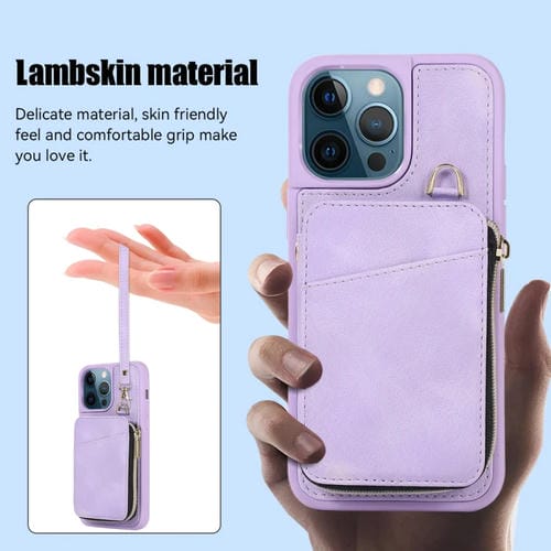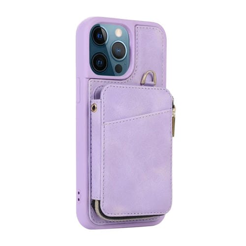 Funda para Teléfono iPhone 12 Pro Max Zipper Card Bag Contraportada (Púrpura)