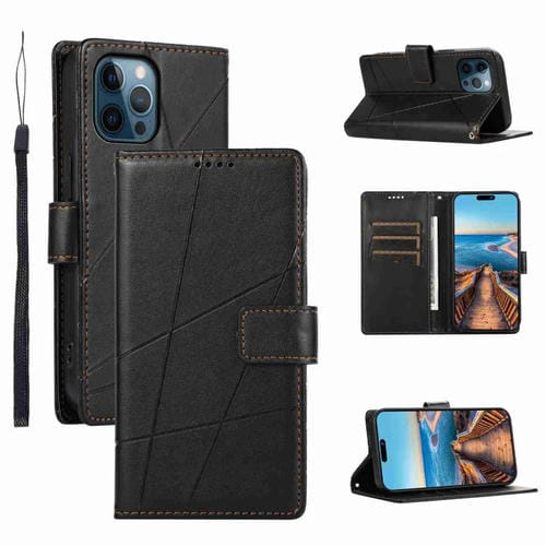 Funda para Teléfono iPhone 12 Pro con Línea en Relieve Textura Cuero Genuino (Negro)
