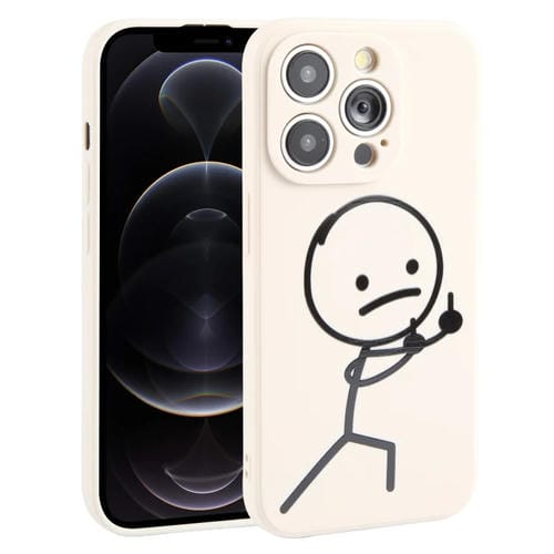Funda de teléfono para iPhone 12 Pro Stickman Pattern de silicona líquida (Blanco)